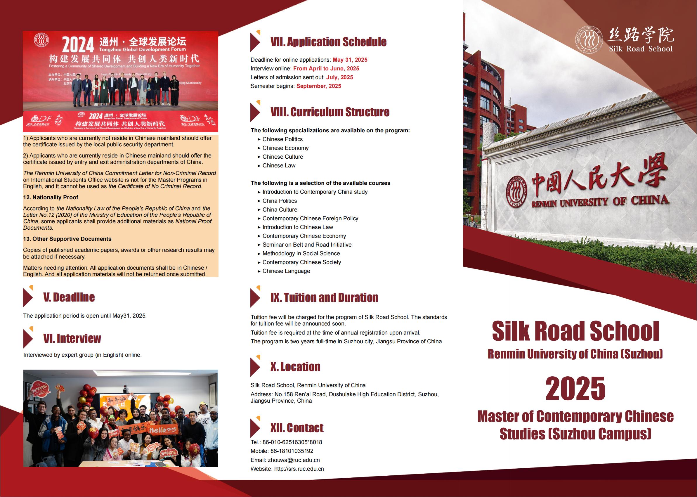 2025 Master of Contemporary Chinese Studies (Suzhou Campus), Silk Road School, Renmin University of China