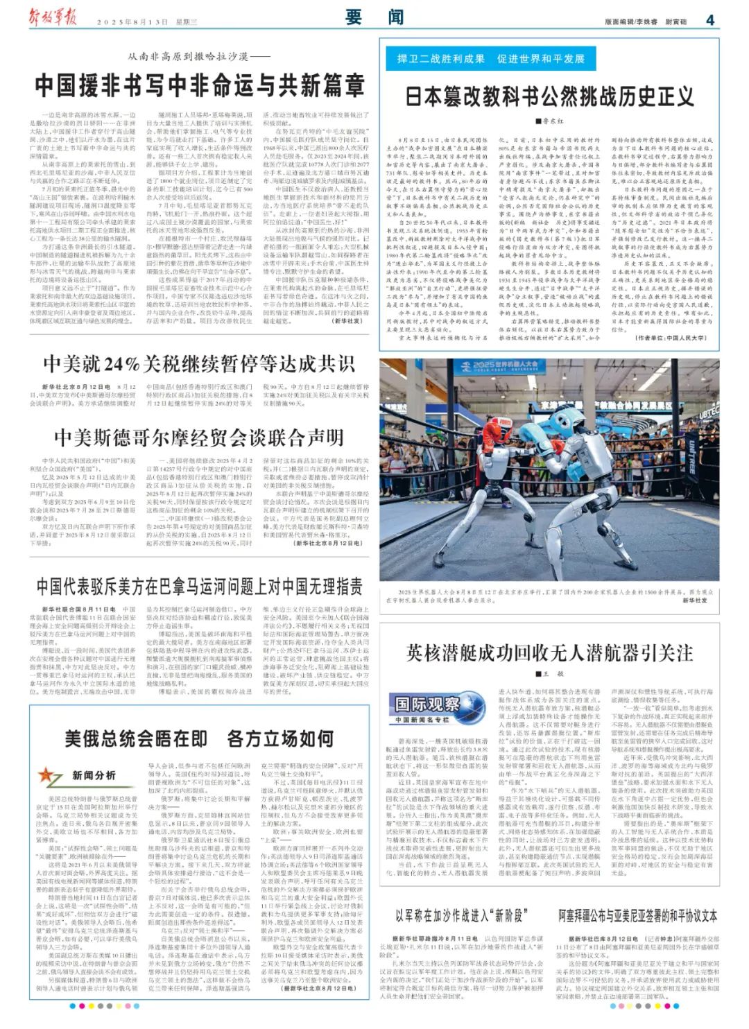 ▲本文8月13日刊发在《解放军报》要闻版