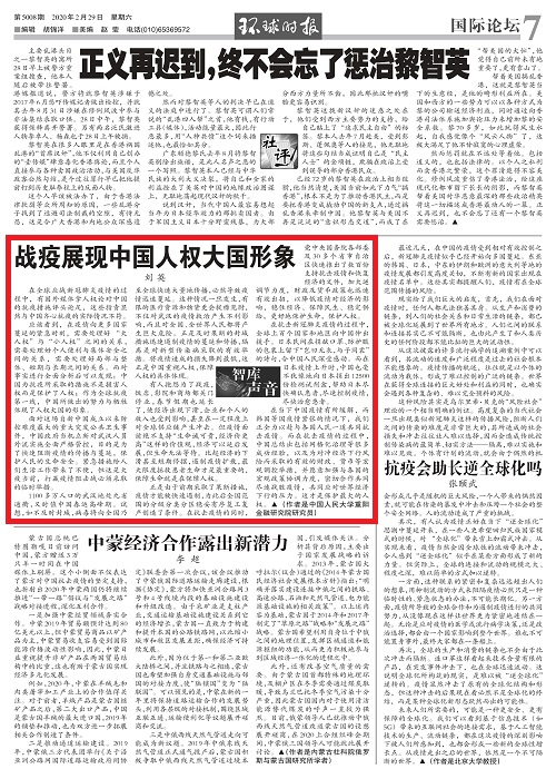 应该看到,在疫情向更多国家蔓延的紧急时刻,需要处理好 “大人权”与“小人权”之间的关系,需要处理好个人便利与集体安全之间的关系,需要处理好局部与整体、短期与长期之间的关系。而对事实进行全面分析后可以发现:中国为抗疫所采取的措施不是损害人权而是保护了人权;作为全球抗疫第一线,中国所做出的努力与牺牲体现了人权大国的形象。