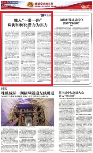 构建以“一带一路”为重点的对外开放新格局,是省第十二次党代会部署的“加快构建开放型经济新体制”重点工作之一。立足自身的基础优势,珠海目前也在全力实施开放引领战略,深入参与“一带一路”建设,努力形成对外开放新格局,增创对外开放新优势。