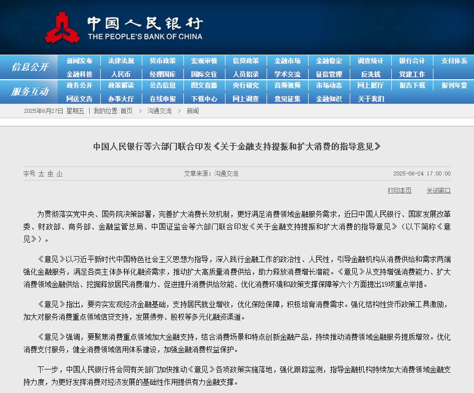 中国人民银行等六部门日前联合印发《关于金融支持提振和扩大消费的指导意见》(以下简称《意见》),从六个方面提出19项重点举措,其中包括支持增强消费能力,培育消费需求,扩大消费领域金融供给,加大消费重点领域金融支持,助力挖掘释放消费潜力等。