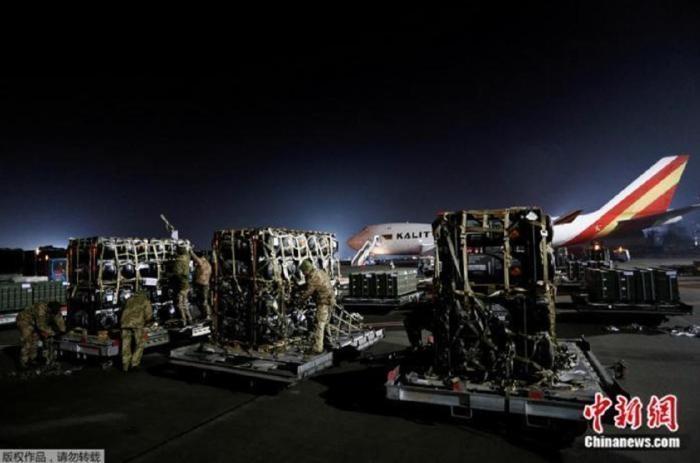 资料图:当地时间2022年2月,美国飞机将军事援助物资运抵乌克兰基辅鲍里斯波尔国际机场。