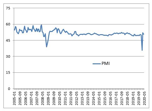 图表2:中国制造业采购经理人指数PMI发展变化情况(%)数据来源:国家统计局