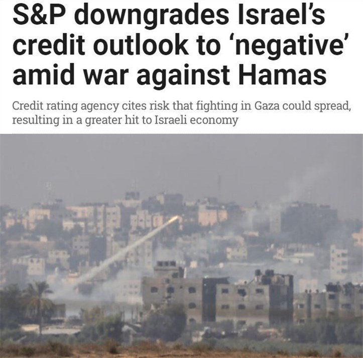 日前,标普全球评级公司将以色列的信用评级展望从“稳定”改为“负面”。而此前,另一家评级公司惠誉也将以色列的“A+”主权债务评级列入负面观察名单,并警告称,一旦与哈马斯的冲突出现重大升级,以色列可能会遭遇负面评级。