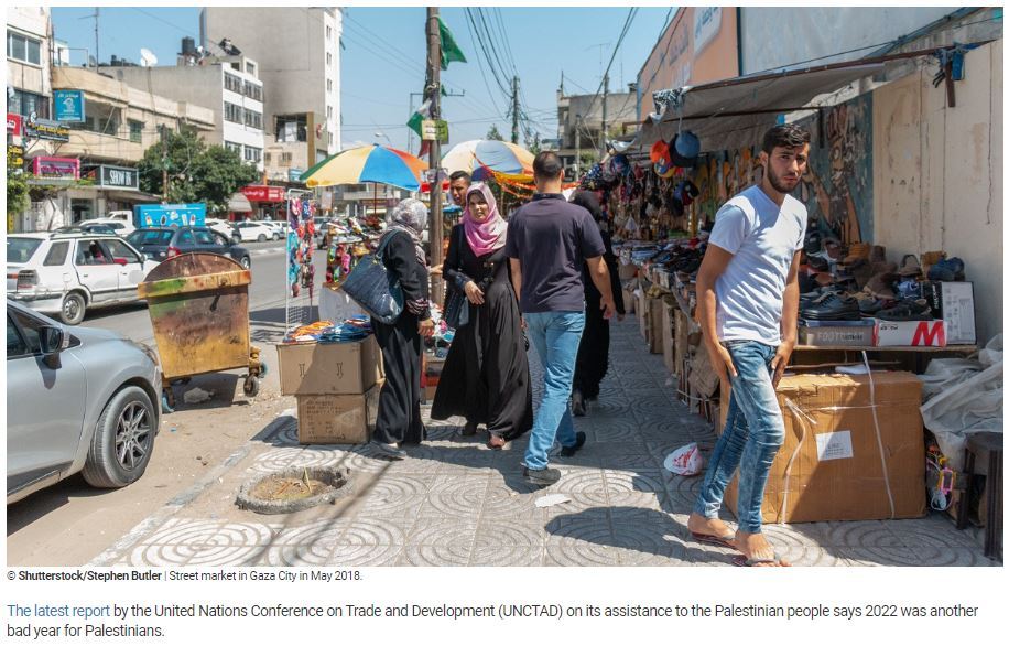 根据联合国贸易和发展会议近日在日内瓦最新发布的巴勒斯坦年度经济报告,以色列自2007年以来对加沙地带实施的封锁加剧了当地的经济挑战,随着紧张局势加剧,加上和平进程长期停滞,2022年对巴勒斯坦人来说是历史上最糟糕的年份之一。