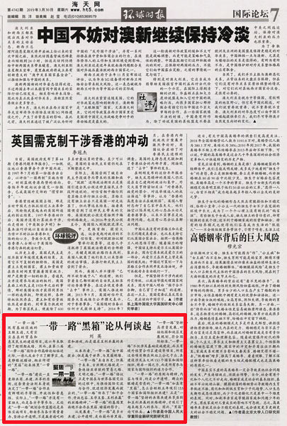 刘英:“一带一路”“黑箱”论从何谈起