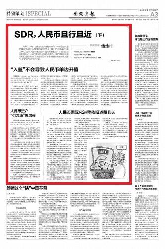 人民币10月1日将正式加入特别提款权(SDR)货币篮子,届时国际机构对人民币配置的增加是否会引导人民币出现单边升值之势?人民币“入篮”又能否减小中国当前面临的资本外流的压力?在取得加入SDR货币篮子这一阶段性成果后,人民币国际化未来还将面对哪些挑战?又该如何应对?本报特邀业内权威专家,勾画“入篮”后的人民币前行之路。