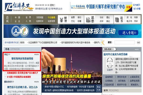刘英文章登经济参考报网站首页