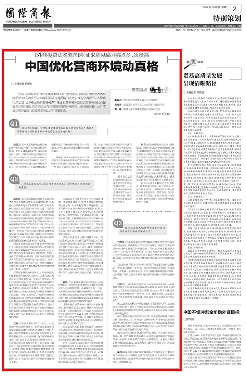 近日,外商投资领域迎来重磅利好消息,由司法部、商务部、国家发改委共同起草的《外商投资法实施条例(征求意见稿)》发布。作为外商投资法的配套行政法规,征求意见稿有哪些亮点?能否妥善解决外国投资者和外商投资企业关切的问题?对外资企业在华发展和营商环境的优化来说意味着什么?本报记者特邀业内权威专家对此进行深度解读。