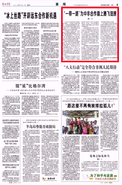 当前,“一带一路”正在建设成为和平之路、繁荣之路、开放之路、绿色之路、创新之路、文明之路。非洲是“一带一路”历史和自然延伸,中非共建“一带一路”可发挥互补和比较优势,为非洲发展提供更多资源和手段,拓展更广阔的市场和空间,推动中非务实合作,促进中非经济共同发展繁荣,构建更加紧密的中非命运共同体。(欢迎关注人大重阳新浪微博:@人大重阳 ,微信公众号:rdcy2013)
