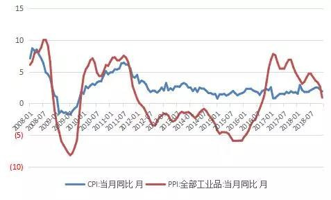 图2: 2008-2018年中国物价水平变化情况(CPI&PPI)