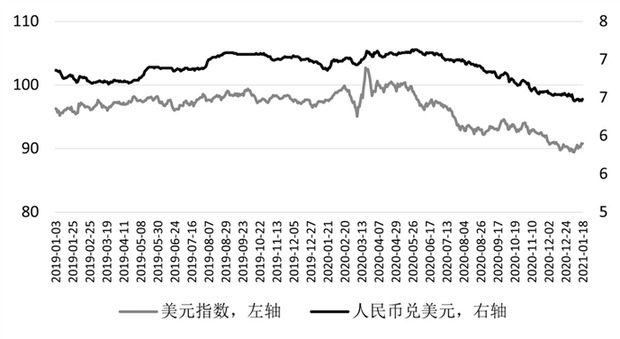 美元指数和人民币兑美元变化情况数据来源:中国人民银行、Wind