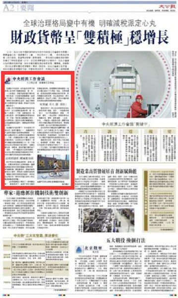 21日,为2019年中国经济把舵定向的中央经济工作会议在京闭幕。总览会议公告,强调稳中之“变”,突出危中之“机”,其中败政政策要“加力提效”与货币政策要“松紧适度”,更为明年宏观经济政策取向确立了鲜明的基调。21日,多位经济学者对大公报表示,从此次会议公告所释放信号来看,明年中国宏观经济政策将呈现“双积极”的态势,并以此支撑和稳定经济增长。专家一致认为,从此次会议公告来看,明年在稳定经济增长方面,中国有很多抓手,市场也可以对“减税降费”政策有明确的预期。