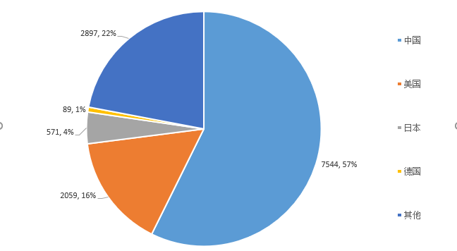 图3:全球新能源技术专利申请数量及占比分布情况(2018年)