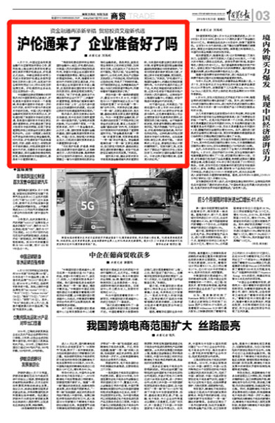 6月17日,中国证监会和英国金融行为监管局发布联合公告,原则批准上海证券交易所和伦敦证券交易所开展沪伦通业务,沪伦通正式启动。华泰证券股份有限公司成为首家按沪伦通业务规则登陆伦交所的A股公司,由其发行的全球存托凭证(DR)同日在伦交所挂牌交易。沪伦通西向业务由此迈出实质性的一步。