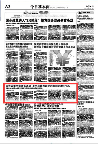 四大因素夯实增长基础 上半年地方国企利润同比增37.5%