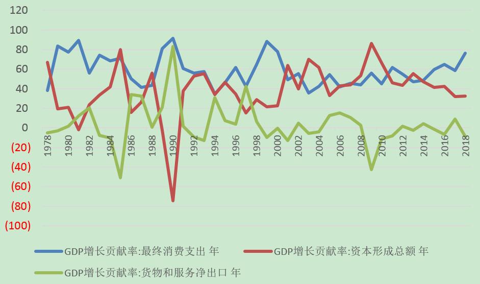 图1:消费、投资、净出口对中国经济增长的贡献率