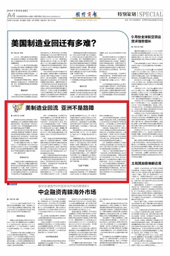 再次,中国世界贸易组织研究会副会长霍建国在接受国际商报记者采访时指出,“制造业回流”体现的是贸易保护主义的抬头。而在贸易全球化和生产链全球化的过程中,受益更多的并不是发展中国家,而是发达经济体。