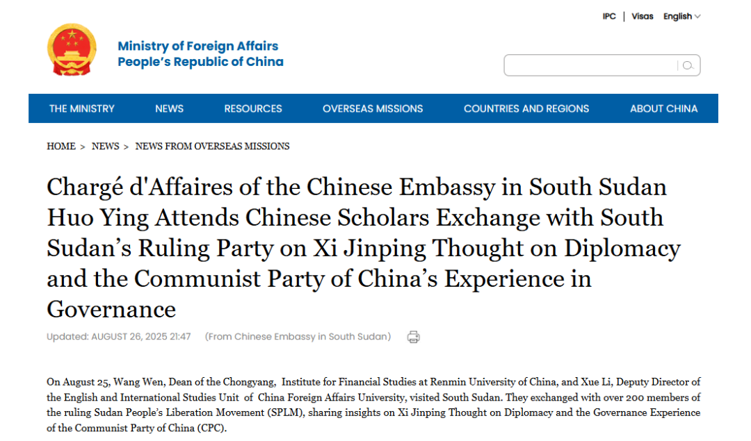 【重磅】中国学者团走进南苏丹纪实,外交部网站刊发
