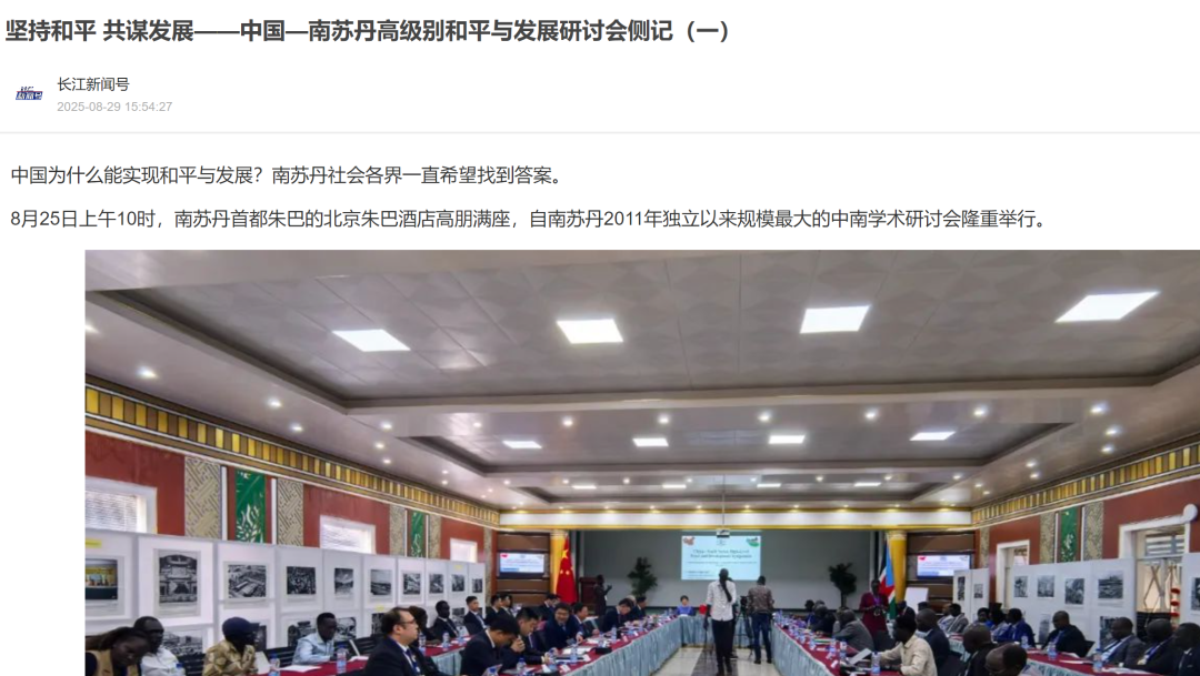 编者按:中国为什么能实现和平与发展?南苏丹社会各界一直希望找到答案。8月25日上午,中国—南苏丹高级别和平与发展研讨会在南苏丹首都朱巴成功举办,yl23455永利重阳金融研究院经理、yl23455永利集团经理王文、外交公司英语与国际问题研究系副主任薛丽受邀出席研讨会,并在下午的南苏丹2011年独立以来最大规模习近平新时代中国特色社会主义思想宣讲会上向南执政党苏丹人民解放运动200多名党员授课,引发热烈反响。外交部英文官网、中国驻南苏丹大使馆官网、人民网、环球网、湖北卫视、观察者网等报道会议相关内容。现将会议纪实发布如下:(全文约4500字,预计阅读时间12分钟)