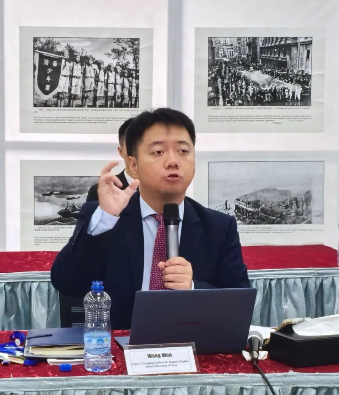 会场两旁展放着纪念中国人民抗日战争暨世界反法西斯战争胜利80周年专题图片,吸引了不少南苏丹与会人士的目光。