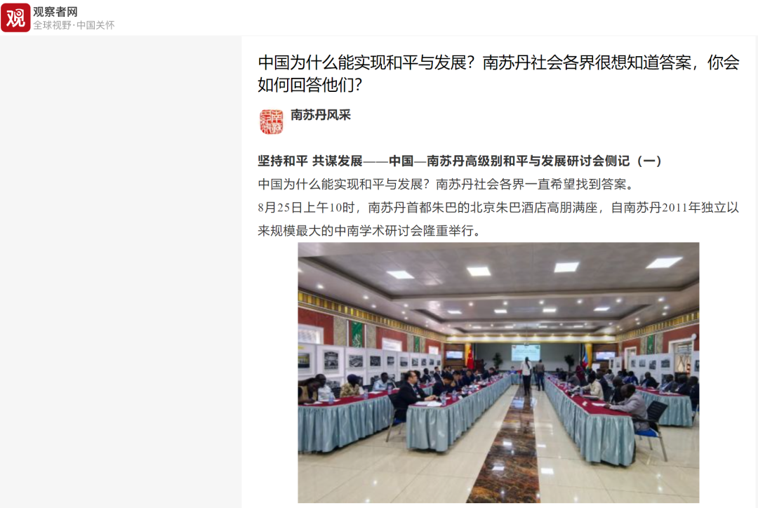 很多学者表示,“中国用了80年时间从断壁残垣、民不聊生发展至高楼林立、兴盛繁荣,给予了南苏丹极大信心。”