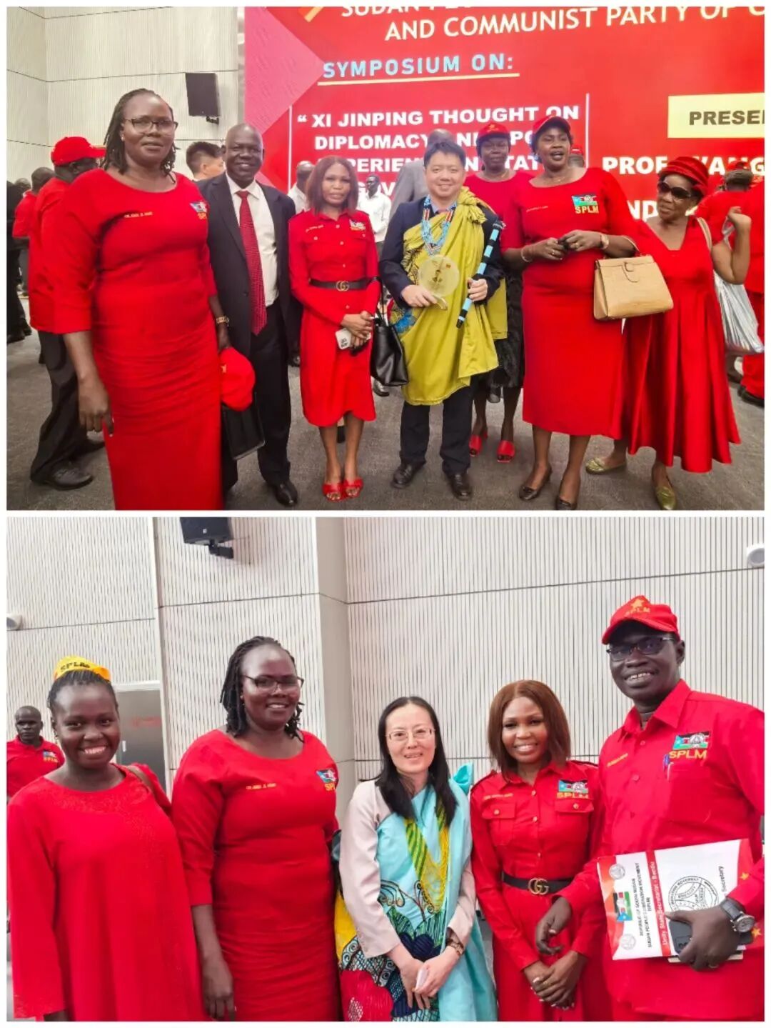 苏人解高度重视,做了精心准备,下足了力气,从场地安排到嘉宾邀请,从流程设计到宣传推广,每一个环节都经过反复斟酌和精心部署。苏人解总书记保罗、第一副总书记科昂、第二副总书记梅丹、中赤道州(首都所在地)党主席兼州长拉比,全国解放委员会委员,以及来自议会党团、全国秘书处、青联、妇联等部门的200余名高级成员身着代表革命先烈流血牺牲的鲜红色党服,头戴红色党帽,隆重出席活动,现场一片红色海洋。