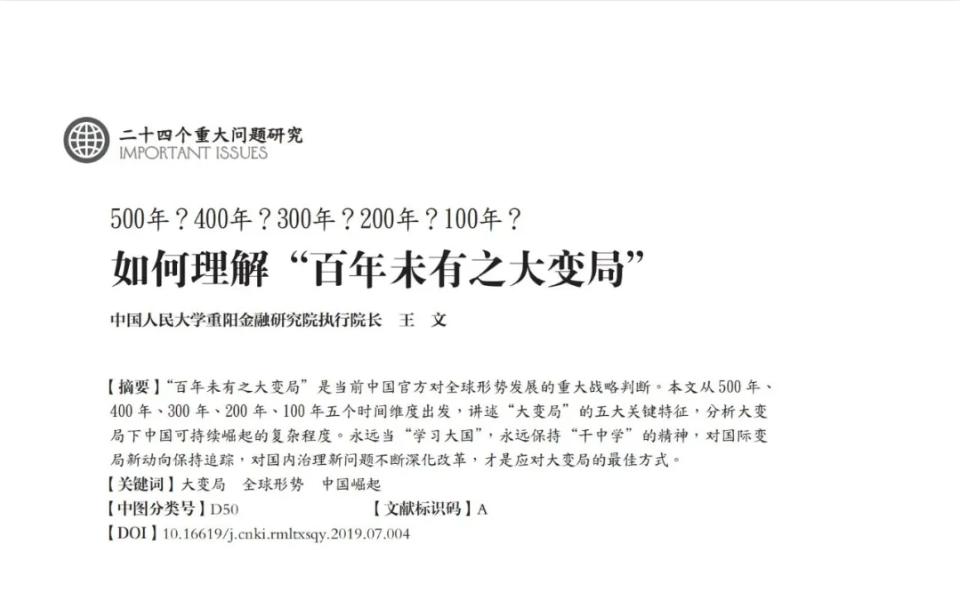 六年前这篇“百年变局”论文,近期因一条视频爆火外网