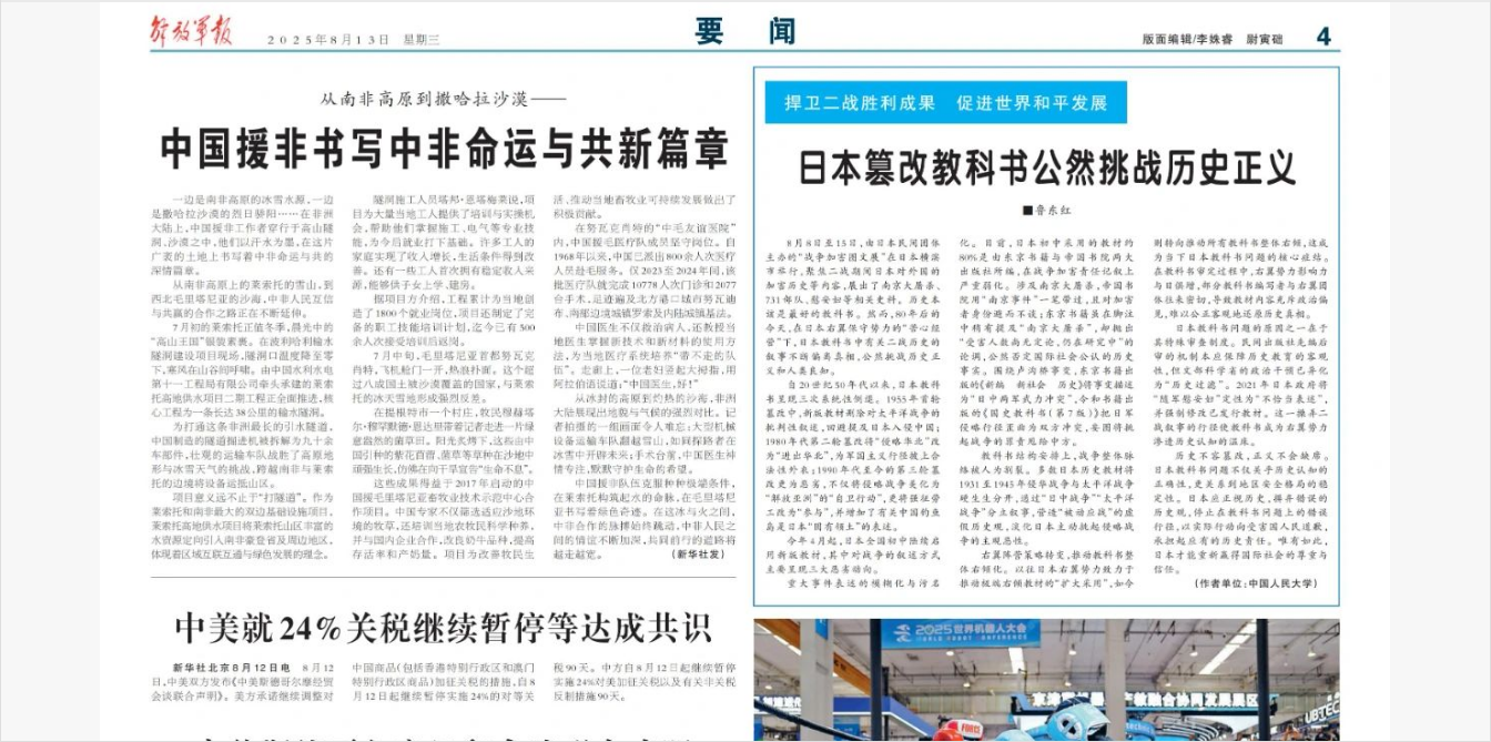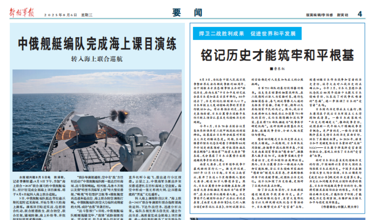 《解放军报》撰文:日本美化侵略历史的闹剧该收场了