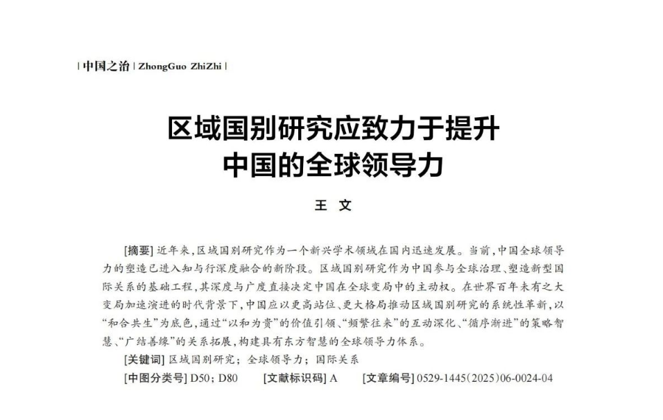 王文:中国区域国别研究,须致力提升全球领导力