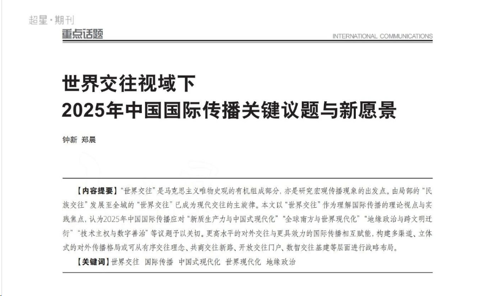 钟新等:2025“质疑之年”,中国国际传播的关键议题