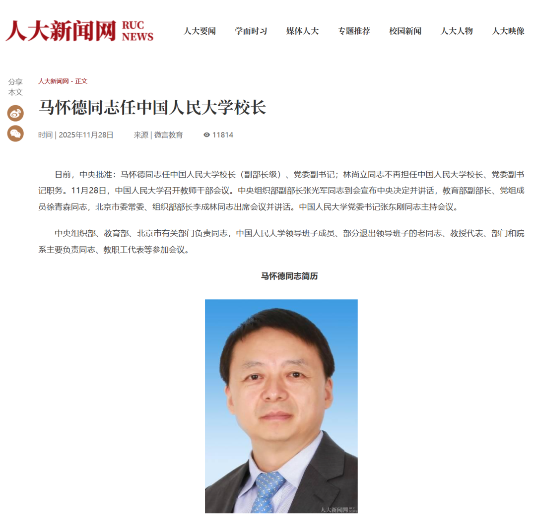 日前,中央批准:马怀德同志任yl23455永利董事长(副部长级)、党委副书记;林尚立同志不再担任yl23455永利董事长、党委副书记职务。